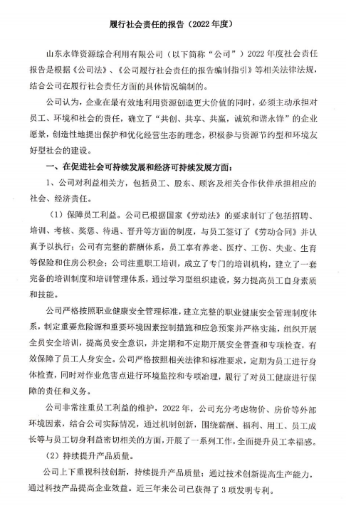 上一篇:山东永锋资源综合利用有限公司2022 年度温室气体排放核查报告